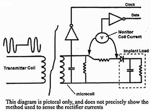 “…we revised the rectifier/data demodulator of MOS8 for integration with existing 2MHz microstimulator circuitry. The existing external diode, amplitude demodulator, and clock recovery circuit were replaced by a new ASIC cell that uses the techniques of MOS8. (Images 10 and 11, above) Presently these chips are under test…” It is reported that the above ASIC “cell”, which finally solves the 4 year old resistor/diode problem “uses techniques” of MOS8. I contend that this “cell” exists on a ASIC design layout that was submitted during the first year of the contract and that Schulman waited until the final QPR#16 to reveal it. This cell could have been present on (and cut from) any number of the early wafer/chip runs that he falsely reported being “unusable”. It is reported multiple times that a “faulty” diode needed to be replaced and is shown again in this instance: “A major effort was expended dealing with the new microstimulator development and in correcting silicon foundry errors via chip microsurgery …a new corrected layout was sent to the foundry for another run of wafers… when the wafers returned, it was observed that they did not work …the design rules provided by the foundry allowed the shorts …by cutting a trace on the integrated circuit, the external diode could be reliably removed. A diode-resistor combination could then substitute for the defective on-chip components.” - Schulman/Loeb/Troyk QPR#1 – March 10, 1995 – June 9, 1995 Again, patent documentation makes argument against Schulman’s reporting, and here he describes how removal of components followed by adding additional small circuitry can actually result in a smaller overall package: Patent 6,035,237: “Implantable stimulator that prevents DC current flow without the use of discrete output coupling capacitors” “The implantable stimulator of claim 3 wherein said first and second circuit means are realized using CMOS transistors configured to function as prescribed circuit elements on the same semiconductor chip …while such DSP circuitry may utilize a significant number of CMOS transistors, configured into appropriate processing and logic circuitry, the overall space required by such DSP or other circuitry on the chip, or a supplemental chip, particularly given the smaller trace sizes associated with modern CMOS devices (0.8 micron and smaller) could still be less than using discrete coupling capacitors (resistor)..18 The repositioning of the bond pads was done to create electrical contacts for attaching the additional suspended carrier/long-range telemetry circuitry which also allowed the elimination of diode/resistor. This activity is not revealed in NIH QPR’s, because Shulman claims that the additional bond pads were needed to attatch the diode and resistor which was cut off of the original chip. Further evidence can be found in U.S. Patents 6,315,721 and 6,164,284 which describe the following: “…The SCU 302 is primarily comprised of (1) a housing, preferably sealed and configured for implantation beneath the skin of the patient's body as described in the parent application in reference to the implanted devices, (2) a signal transmitter in the housing for transmitting command signals, (3) a signal receiver in the housing for receiving status signals, and a programmable controller, e.g., a microcontroller or state machine…” The “state machine” mentioned above is included in the additional circuitry that Schulman used which allowed the elimination of the resistor and diode “…For example, sensor circuitry can be coupled to the electrodes …and provided the sensed data to the controller circuitry. Preferably, the sensor circuitry includes a programmable bandpass filter and an analog to digital (A/D) converter that can sense and accordingly convert the voltage levels across the electrodes into a digital quantity. Alternatively, the sensor circuitry can include one or more sense amplifiers to determine if the measured voltage exceeds a threshold voltage value or is within a specified voltage range. Furthermore, the sensor circuitry can be configurable to include integration circuitry to further process the sensed voltage. The operation modes of the sensor circuitry is remotely programmable via the devices communication interface…” The programmable bandpass filter is also part of the additional circuitry that Schulman integrated after eliminating the diode and resistor during his NIH contract and the additional functionality of the added circuitry enabled bi-directional telemetry over greater distances than with a normal inductively coupled link. In order to sense and monitor as described above in patent text, and also the ability to do so with only 2-5% modulation and switch in 4 clock cycles or less which is described in Schulman’s QPR’s, the “sensor circuitry” mentioned above must be implanted with (onto or next to) the microstimulator. This is in contrast to a typical inductive link where this sensing and monitoring takes place between a coil attached outside the skin and an implanted device where the impedance of the tissue and the increased distance do not allow the low modulation and instantaneous switching. Although much of this evidence pertains to Schulman and Loeb, Phil Troyk worked very closely with them on the Suspended Carrier chip, the back telemetry and also the overall packaging. The fact that it is reported that Martin Schwan performed the removal of diodes and resistors at IIT also suggests that both Troyk and Schwan direct knowledge of Schulman and Loeb’s intent with the device. In email correspondence, Phil Troyk responds to my inquiry about addition of the small circuitry by denying any intent for it to be added to the implanted package and claimed that it was to exist outside the skin, but then in an about face, claims that the idea was “one of the other team members” and that he “saw no benefit to it”. This ema