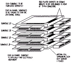 13. Other Evidence Much further evidence exists in Joseph Schulman and Gerald Loeb’s U.S. Patent Office filings and the Quarterly Progress Reports from contract #N01-NS5-2325. This evidence shows fraudulent reporting, that technology and alternative implantable device invention discoveries occurred during the contract period, and also provides insight regarding motive and other factual evidence. Most evident however is that many of the inventions and methods involve integrating or stacking additional circuitry allowing smaller implant sizes and the ability to eliminate external components and increase the range and options for bi-directional telemetry, and also making it possible to pursue the unethical long term research involving an unwilling subject. Previously, in article 12, Mr. Wolf from Slicex reports that “Dr. Schulman wanted to use an entire reticule which meant we placed 5 IC's in a stack, and then 2 IC's rotated 90 degrees at the end”. The following shows an illustration from Philip Troyk’s separate NIH contract for a visual prosthesis as well as text from those QPR’s: “….the NPP is highly motivated to initiate the development of a fully implantable cortical stimulation system which could be used to provide inputs and computer control for hundreds, to over one thousand, implanted cortical electrodes. This project used the combined capability four organizations, the Illinois Institute of Technology, …., and the A.E. Mann Foundation. The device specified and designed in this contract has significantly higher packaging and functional density (is smaller) than any other implantable neural prosthesis previously developed.”