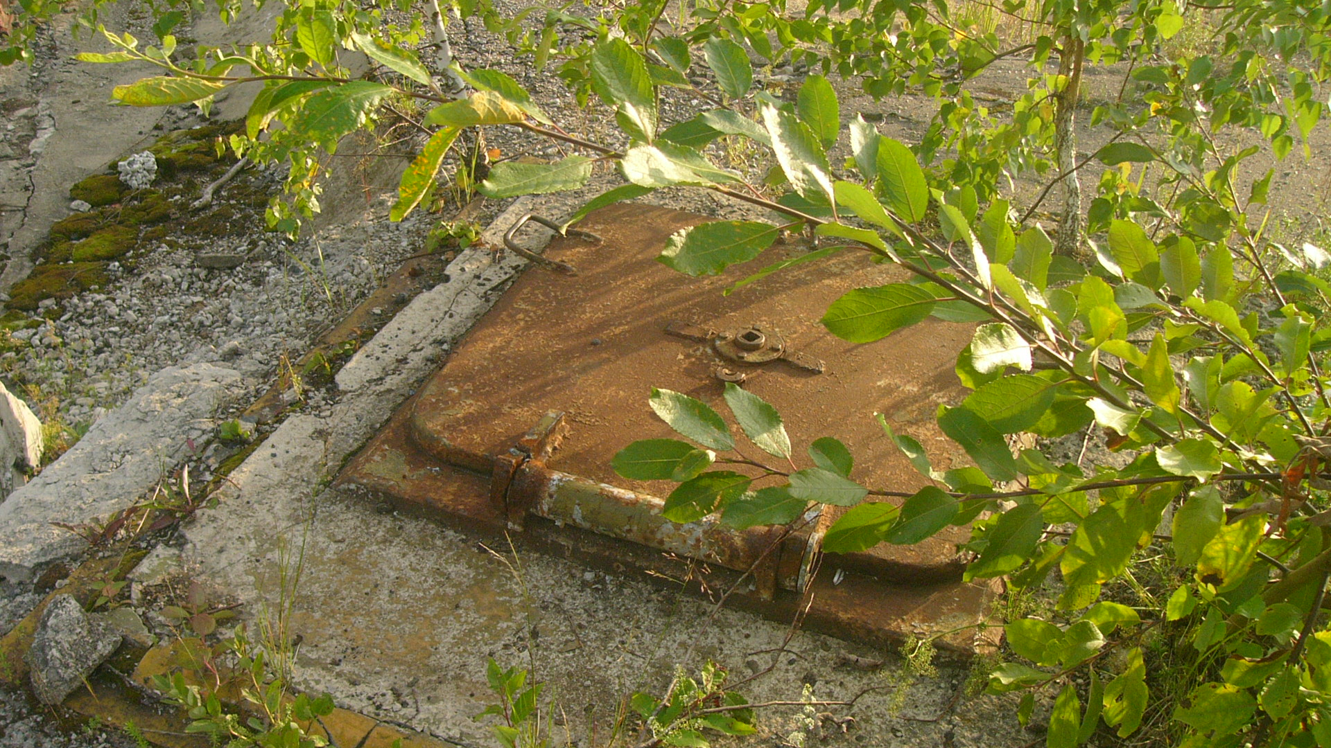 There are dozens of these everywhere. These would be the installations that move to open up the missile silo. All of the manholes and hatches are welded and bolted shut.