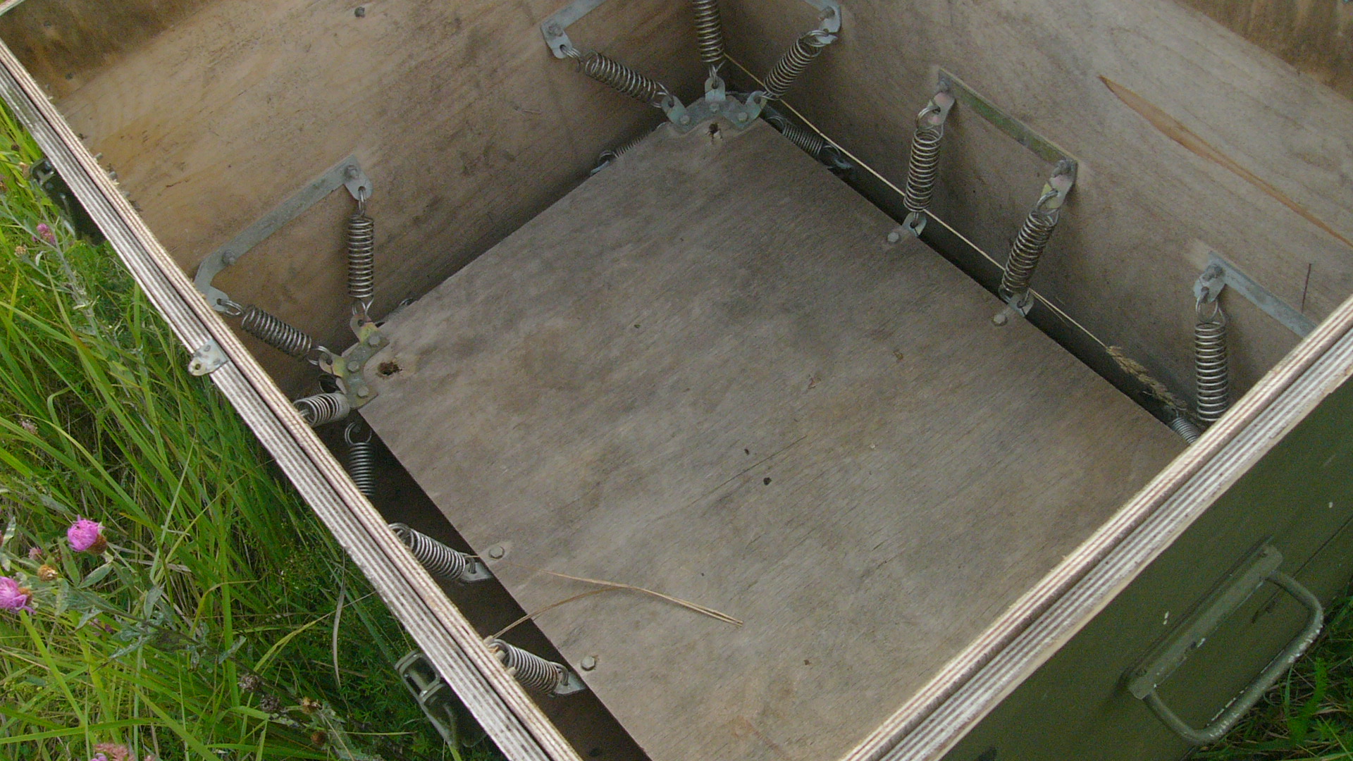 Mystery box probably used for transporting nitro glycine based explosives. There is an arrow and markings on the top
