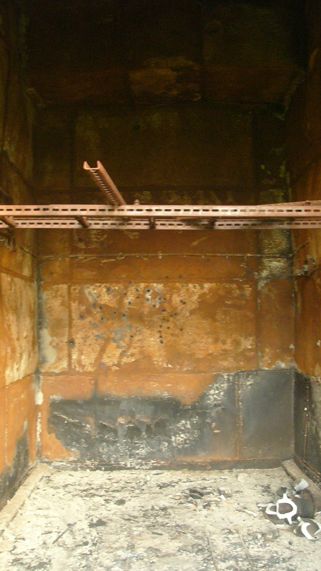 Bullet holes and ashes all over the place. I do not know what someone was doing here but it does not look good. The bullet holes in the back