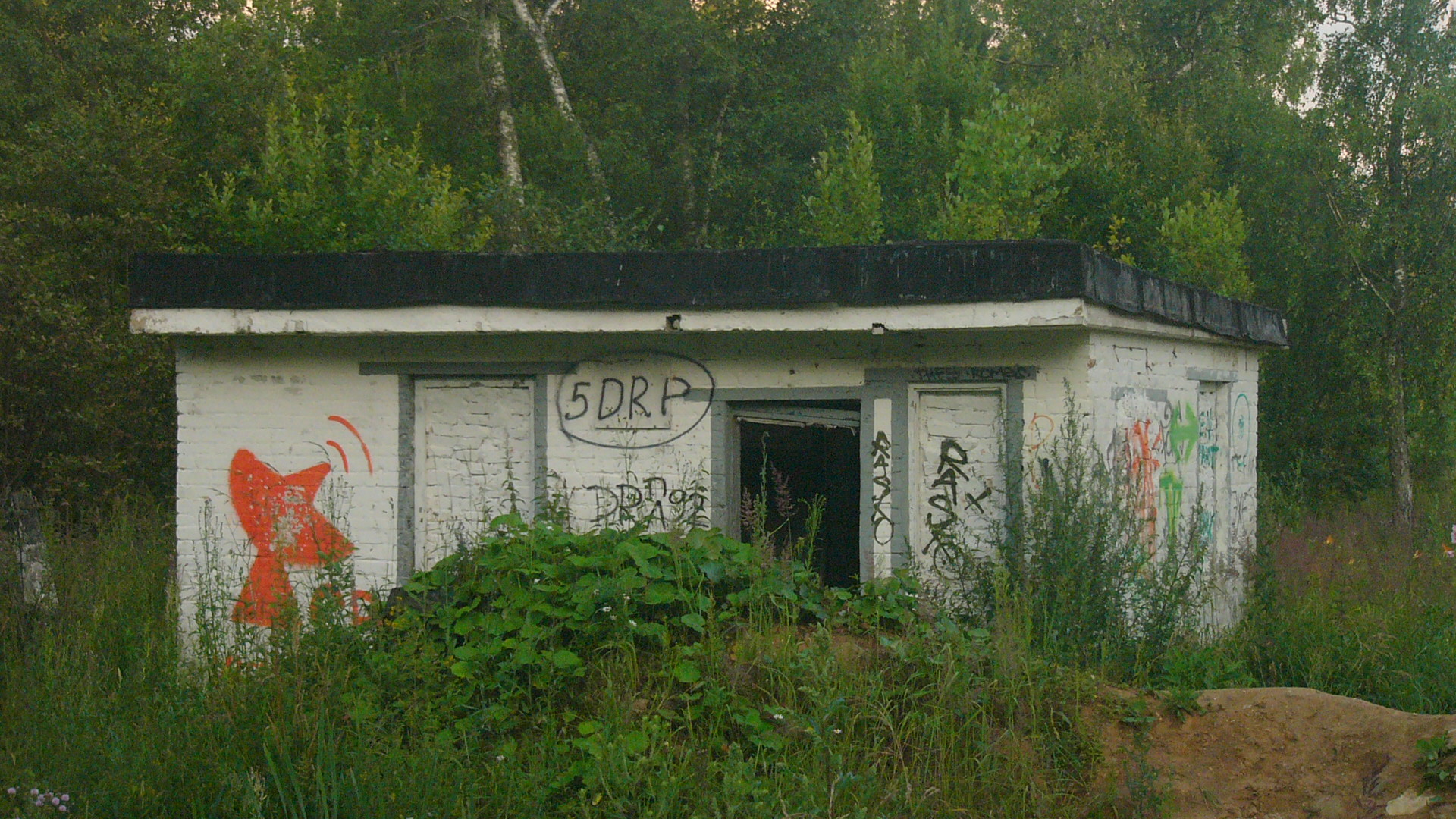 An abandoned bunker. Signs left by previous visitors are everywhere spray painted on all of the locations.
