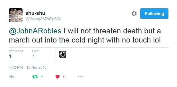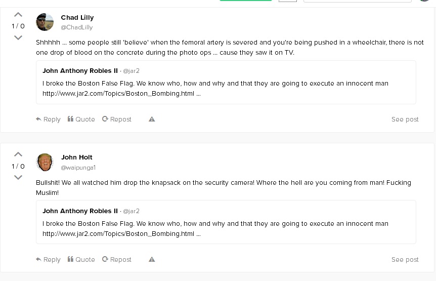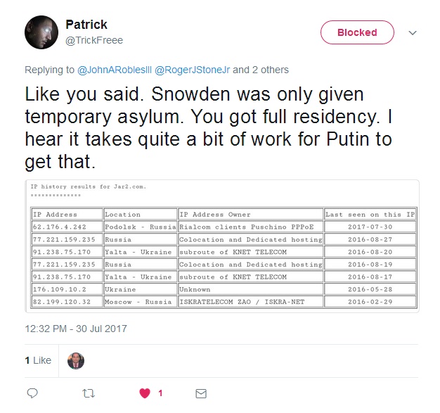 Here calling me a traitor saying I should be in jail and hoping the CIA gets me.