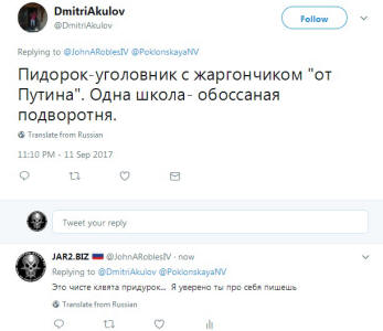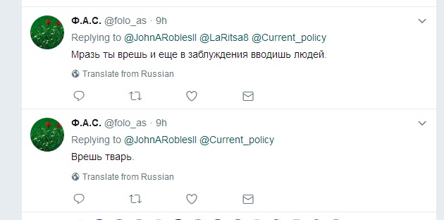 Fascism and racism in action in three Tweets in Russia. They have actually started showing pro-Bandera films in Russia which is what started the entire destruction of Ukraine. The normalization of nazism is the tool they used to bring nazis to power. Now they are doing it here and there is almost no outroar. As you see the racist tactic is the same in order to terrorize me into silence. I thanked these people for having the courage to stand up and said my family and I live in terror of the racism and the fascism that is spreading. And someone Tweets that I am talking crap as if I am lying to discredit me and so no one listens. YES we live in terror and not unless you are black or brown and in Russia will you ever understand! What kills me is that I have been exposing them since day one and my family has been wiped out and I am ignored! There are nazis in Ukraine killing innocent civilians becuse they are Russian and against the Banderavites and the US and the CIA and all of their internet and media operations and everything they have are supporting them and silencing anyone who speaks out or exposes them!! WAKE UP!!!!