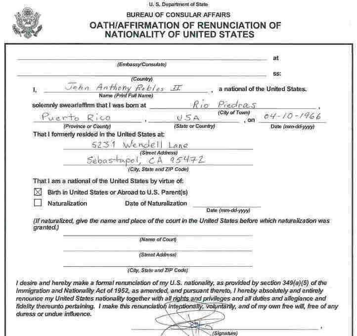 Отказ от гражданства США на 3 языках: СМИ молчат Raw home video posted on YouTube in three languages Press Release and Statement by John Anthony Robles II on Renouncement of US Citizenship