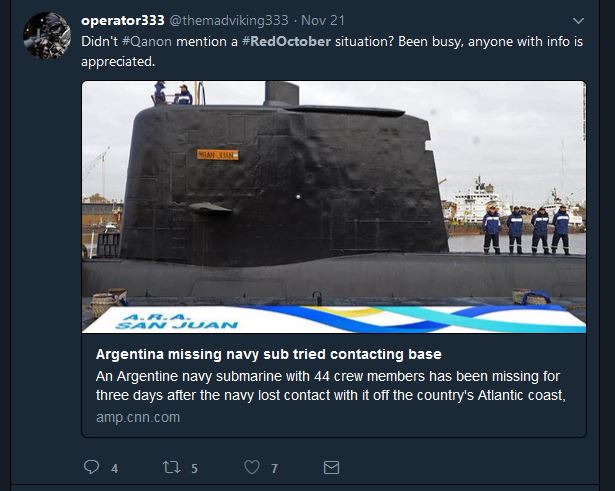 December 01, 2017 You seem busy with all the news, so I wanted to throw this onto the table. The recent ARA San Juan Submarine affair may have been orchestrated by one or more Intelligence Agencies. I have made breakthroughs in the case related to the continuing attacks that are being charted out using these "Treasure Map" Themes.....The Blueprint we have seen forming from the Kryptos/CIA focal point, and other areas that are targets relating to these affairs set into the arrays shown. Recently I was researching more of the likeness to the Cicada style of bouncing and relaying puzzle pieces around as being a source of coded info related to operations, as I had not really picked up their transmissions, but on 4Chan, specifically the recent "Q" Posts.....I have found there was a coding that related to a nearby picture that spoke of a title that clicked immediately: "After the Tempest". As we know that the CIA and Mossad are working in conjunction with other Intelligence Agencies, and have used these themes in the past to relate their mapping systems to their operatives, we know that they plan to use this system until they are caught in the act. What I see here is the coding on 4Chan was made into a system to locate the operation that was pending, using the theme that Trump had mentioned ..... THE CALM BEFORE THE STORM. It also appears that the person posting a drawn out collection of dozens of questions there is also subtly adding info into his posts surrounded or flooded with anti-establishment propaganda, including talking about indictments and arrests that never happen. He appears to try to mimic a role as if he is one of the insiders picking up on gossiping, and at the same time appear fluent in military affairs.....even posting GO CODES, and other cryptographic info. This is something that has to be seen.......so here we go. Around the Halloween attacks in Seminole Heights, Fl, I noticed activity on 4Chan that started looking like it was highly coordinated....below is a description of info that someone else noticed held strange out of place similarities to this person's true identity. The Numbers were somewhat obvious, starting on 11/1 and posting a series of numbers "4 10 20"....so I am thinking more about the meaning, and start to see the whole thing unfolding with the images being posted...Its clearly becoming a complex group, running multiple posts, all with up to date coverage of intel that is not seen in the MSM......A LOT OF IT.... Remember at this point Trump had begun this "Trend" as a comment....so whether or not he began "The Storm" is beyond me....all I know is that he is clearly in the know. Seeing the sub gone missing on the 15th shortly after these discussions were spread across the Twitter/Reddit/FB Community Boards, I started to put two and two together as the "Q" informer was now also talking about a #RedOctober event...... The info seemed so odd that it had to be something that was already posted somewhere in some cryptic manner......and I found it from scanning the many areas OVER HOURS, trolling for baited intel.....on Google Earth, the only picture that is nearby the area of the missing sub is below AFTER THE TEMPEST......THE STORM.... NOTICE THE DATE ON THE PHOTO.....04/02/2010 4 10 20......the magic numbers......but that's not all......there was a map left as well. Another Treasure Map. Argentina's Coast held a familiar shape when I was looking through the articles and info from the news about where the calls were made and the location of the last signals. Numerous sites all differed in their graphic representations of the locations, but with a little work I was able to narrow it down to a precise area using the key to the cipher. I have an extensive archive of treasure maps and carved images that relate to older legends, even some of the areas that were used for operations of the KGC in South America. From these I pulled out one familiar piece of history that seemed to fit into a space there precisely. The Google Earth photos below are combinations of a base map of the area there in the vicinity of the missing sub. The 3 points were significant points of the movement of the sub, as it appeared to be correlating to the map's imagery with an overlay template at the same time as lining up with reports about its whereabouts. They are shown here together with a landscape that was made with a massive OMEGA overlaid on its terra-formed property lines. The Omega's line up, as does the rest of the layout there, so I found it key that there was an exclamation mark on the map.....apx. right where the sub went missing. Further examination of the area shows that there are related markers that can be seen after zooming in on the area. One appears to be a large electric wave-looking image cut into the landscape.....and the sub was reported to be short circuiting. Shortly thereafter following the path of the sub, and in the image overlaid, we see the inverted exclamation point, as in the Spanish use of the symbol.....as well as a set of coordinates that possibly relate to the area where it lost contact or was disabled. This map was not to scale, and there also appeared to be a place for an additional map to be added.....as the event I am seeing compiled was basically a series of strange coincidences. This is shown clearly in the rectangular space in the photo above. Take a look at what you get when you add the two together.....a secondary and more detailed looking image of the whole affair.....