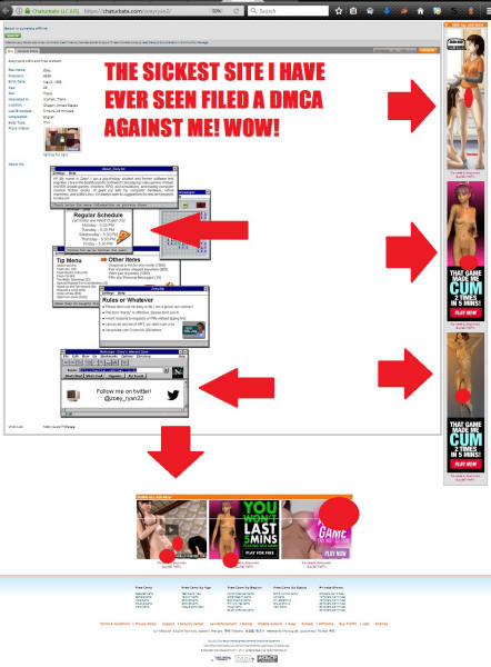 So we investigated. Found the claim to be completely false and wanted to file a "Counter Notification" But this can not be done unless you give them jurisdiction (which we will never do) and which will allow them to serve you with court documents demanding you appear in California to defend yourself even if the claim is false. We dug a little more and discovered the complainant is a California based pedo perversion site which we had never even heard and whose contnent we surely never used on this page that you are looking at now. In Russia this sicko would be arrested immediately. This is the NWO