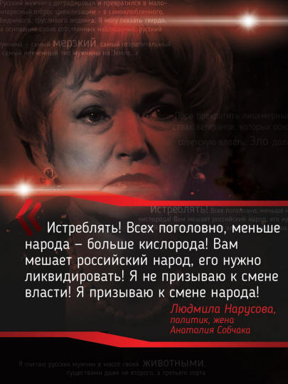 Glorifying and Presenting the Most Ignorant Western Puppets in the Media as the "Elites" Real Reason and Expected Outcome After the collapse of the USSR in the words of Anatoly Chubais those close to property were given it in the privatizations, including mafia figures because in his words, "they would have gotten it anyway". He is therefore most responsible for the creation of an ignorant, brutal and self-serving criminal elite who now run most of the country and have no real idea or plan rather than simply guaranteeing their own continued wealth. These pigs are the ones destroying Russia today from the inside, yet for them their live are just fine. Glorifying ignorant comedians and actors like Sobchak as some sort of political elite is an insult to all educated and intelligent and patriotic Russians. The fact that ethnic Russians have no chance in the media and that it is controlled by the Zionist faction is well known and an established fact. Their view of Russians as genetic garbage and worse is well known as well. Real Solution Cleanse the media of all of these elements. Chance of Resolution or Correction Zero to Low