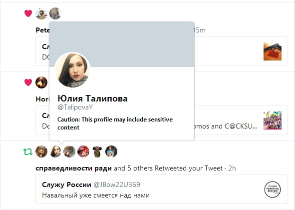May 06, 2018- It is so blatantly obvious what Twitter is doing and how shadow banning works and why, that it is stunning to me that Twitter is still allowed to operate within the borders of the Russian Federation. Let me walk you through this if it is not clear for you. After four years using Twittler heavily and having been suspended 12 times and received a lifetime ban from Twitler for simply defending and promoting Russia, I can tell you that they are definitely involved in Social Engineering and are being controlled by the CIA and MOSSAD worldwide.First let's look at this example. Julia is shadow banned. Her content has been marked as "Sensitive". This is usually for porn or violence or other anti-social content. Normally any person would avoid such accounts, myself included because if you interact with such accounts you also get flagged and possibly suspended. However I see that Julia is an intelligent looking woman and she has retweeted my Tweet which is a rarity these days as I am also shadow banned and avoided like the plague, so I go to her profile to see what is so bad there.