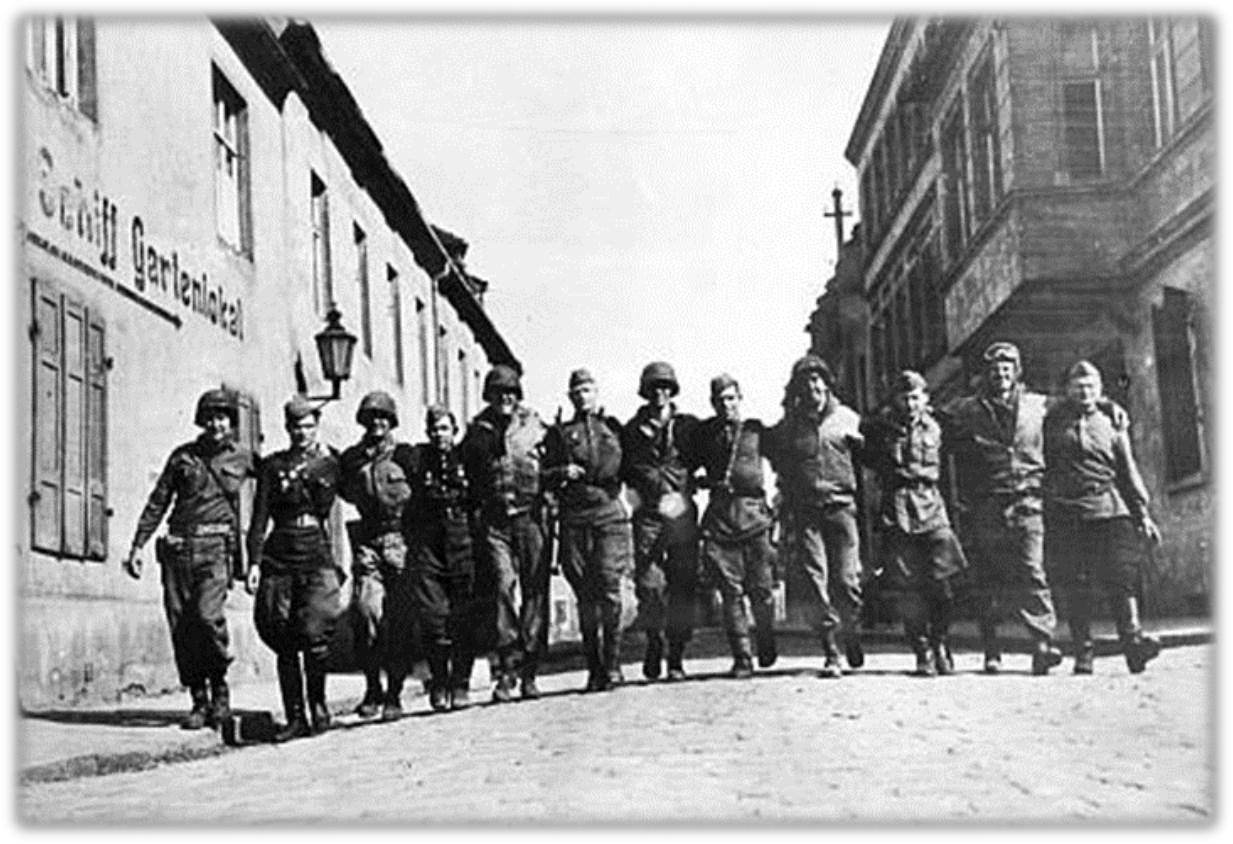 How the Russians took Berlin single-handedly The Battle of Berlin was one of the largest battles in human history. It began on April 16 in the outskirts of the city. By April 25, Soviet troops had entered the Third Reich's capital. About 3.5 million soldiers from both sides participated in the fight with more than 50,000 weapons and 10,000 tanks. Hitler's troops worked desperately to defend themselves with two lines of defense organized in Berlin. Many homes were equipped with bunkers and these houses, with their thick walls, became impregnable strongholds. Of particular danger for the advancing Soviet troops were the anti-tank weapons, bazookas and hand grenades since Soviet forces were heavily reliant on the use of armored vehicles during the attack. In this environment of urban warfare, many tanks were destroyed. Berlin was captured by Soviet troops on three fronts. The most difficult task fell to the soldiers from the First Belarus Front, com- manded by Georgy Zhukov, who had to charge the well-fortified German position in Seelow Heights on the outskirts of the city. The attack began during the night of April 16 with an unprece dentedly powerful and coordinated artillery barrage. Then, without waiting for morning, tanks entered the battle supported by the in- fantry. The offensive was conducted with the help of floodlights, which were set up behind the advancing troops. Even with th e use of this clever this tactic, several days were needed to seize Seelow Heights. The tactics used in the Battle of Berlin built on experience from the Battle of Stalingrad. The Soviet troops established spe cial assault units, in which tanks played a critical role. Typically, maneuvers were carried out in the following manner: The infa ntry moved along both sides of the street, checking the windows on both sides, to identify obstacles that were dangerous for the v ehi- cles, such as camouflaged weapons, barricades and tanks embedded in the ground. If the troops noticed such impediments up ahead, the Soviet infantry would wait for the arrival of their self-propelled tanks and self-propelled howitzers. Once this support arrived, the armored vehicles would work to destroy German fortifications at point-blank range. However, there were situations where the infantry could not keep up with the armored vehicles and consequently, the tanks were isolated from their cover and became easy prey for the German anti-tank weapons and artillery. The culmination of the offensive on Berlin was the battle for the Reichstag, the German parliament build- ing. At the time, it was the highest building in the city center and its capture had symbolic significance. The first attempt to seize the Reichstag on April 27 failed and the fighting continued for four more days. The turning point occurred on April 29 as Soviet troops took possession of the fortified Interior Minis- try building, which occupied an entire block. The Sovi- ets finally captured the Reichstag on the evening of April 30. Early in the morning of May 1, the flag of the 150th Rifle division was raised over the building. This was later referred to as the Banner of Victory. The battle for Berlin was the last step towards the end of Great Patriotic War and marked the fall of inhuman racist Nazi regime. On April 30, Adolf Hitler committed suicide in his bun- ker. Until the last moment, he was hoping that troops from other parts of Germany would come to his aid, but this did not hap pen. The last German troops in Berlin surrendered on May 2 which resulted in final defeat of Nazis in the WW2. Source: RBTH (Russia Beyond the Headlines) & Russia’s Embassy Staff Elbe Day: A handshake that made history Elbe Day, April 25, 1945, is the day Soviet and American troops met at the River Elbe. This contact between the Soviets, advancing from the East, and the Americans, advancing from the West, meant that the two powers had effectively cut Germa- ny in two. For years, Soviet troops had been inching slow- ly westward, pushing Nazi troops back all along the Eastern Front. On June 6, 1944, D-Day, American and British troops opened a second front in Europe and began fighting the Nazis on the ground from the West. Finally, on April 25, 1945, Soviet and American troops cut through the Wehrmacht divisions and met in the middle of Germany near the town of Torgau, 85 miles from Berlin, on the Elbe River. The allied forces had effectively cut Germany in two. That Soviet and American troops would meet in this general area was known, and signals had even been worked out between the allied leaders at Yalta to indicate to the troo ps on either side that they were friendly. But the actual meeting itself was decided by fate. The moment, which came to be known as the Meeting on the Elbe, portended the end of the war in Europe, which came less than two short weeks later, when the Red Army stormed Berlin. Lt. Bill Robertson of the 273th Regiment of the 69th Infantry Division, driving on the morning of April 25 into the town of Torgau, knew that he might encounter Soviet troops, and knew he should greet them as friends and allies. Gen. Courtney Hodges, Commander of the First U.S. Army, had told his men to “Treat them nicely.” But Robertson was not prepared to carry out the protocol which was worked out several months before in Yalta. The first American soldiers to make contact were to fire a green-colored star shell – the Soviets, a red one. Robertson and the three men in his patrol decided the best way to show they were Americans was to present an American flag. As they didn’t have a flag, they found a white sheet and painted it as best they could to look like the stars-and-stripes. Soviet Lt. Alexander Sylvashko was skeptical at first that Robertson and his men were Americans. He thought the four men waving a colored sheet were Germans playing a trick on the Soviet troops. He fired a red star shell, but did not receive a green one in return. Sylvashko sent one of his soldiers, a man na